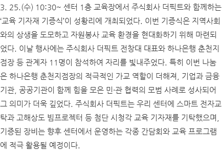 1. 30.(금) 11:00~ 센터 1층 교육장에서 ‘2025년 온기나눔 프로그램 공모’ 추진 우수 단체를 초청하여 사업 설명회를 개최했다.