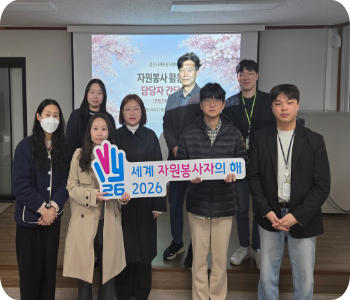 2. 27.(금) 10:00, 14:00~ 센터 1층 교육장에서 '2026년 활력충전 자원봉사단체 프로그램 공모 지원 사업'에 선정된 27개 단체를 대상으로 사업 설명회 및 '2025년 공모사업 평가 우수단체' 인증서 수여식을 개최했다.