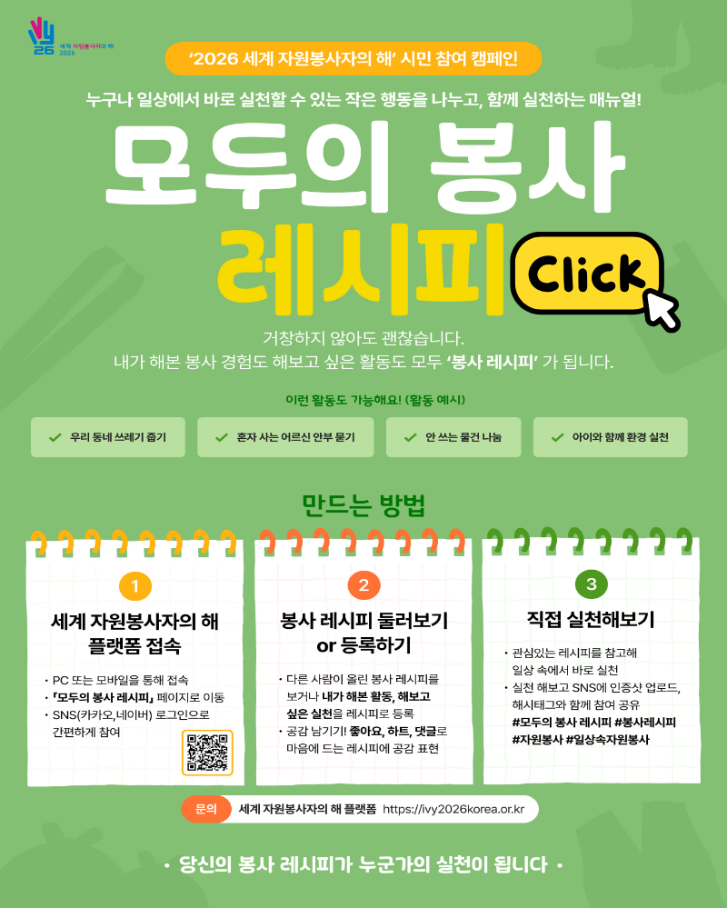 이날 현장에서는 우수 단체로 선정된 양재를사랑하는모임, 새마을작은도서관봉사단, 소양동자원봉사단, 퇴계동자원봉사단에 대해 ‘2026년 활력충전 자원봉사단체 공모사업 선정 단체 지원 인증서’를 수여할 예정이다. |